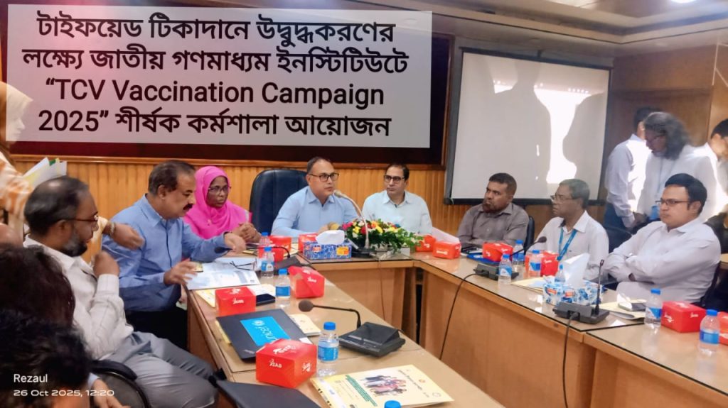 টাইফয়েড টিকাদানে জনগণের সক্রিয় অংশগ্রহণ নিশ্চিত করা এবং গণমাধ্যম পেশাজীবীদের সচেতন ও সম্পৃক্ত করার লক্ষ্যে এক কর্মশালা অনুষ্ঠিত হয়েছে।
